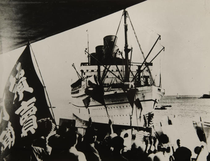 The ocean liner the Empress of Japan arriving in Yokohama harbor on November 2, 1934.