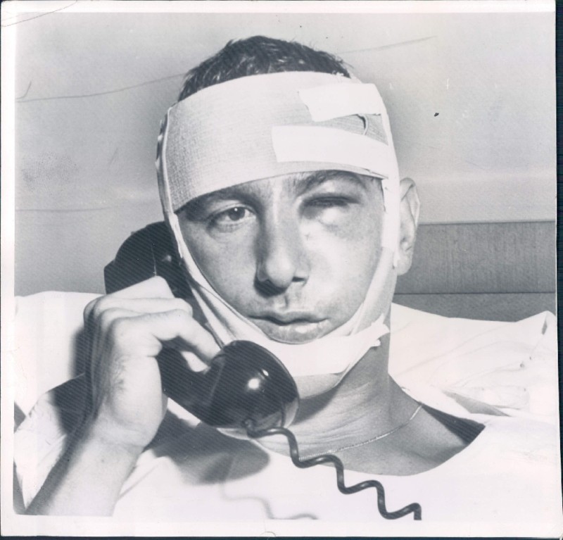 I believe the picture of Martin in the hospital was after he was hit in the face by a Tex Clevinger fastball in ’57 rather, not the result of “one of his brawls”