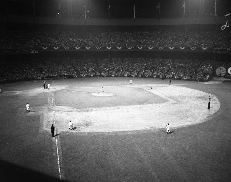 Before the game, 500 wounded servicemen arrived to watch the game. Pre-game festivities include a fungo-hitting contest won by Dodger pitcher Cal McLish; a throwing-for-accuracy competition for catchers won by Dodger Bobby Bragan; and three heats in a sprint contest, won by Snuffy Stirnweiss, Eddie Miskis, and Luis Olmo.