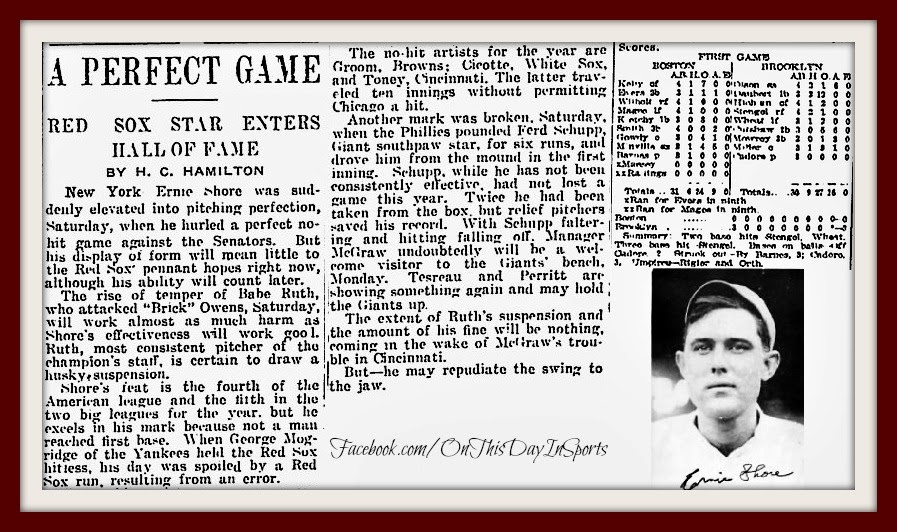 That day, Ernie brought his A-game. Taking over for the tossed Ruth, he then pitched the game of his life. After Ray Morgan was thrown out attempting to steal second, who could ever have predicted what was to follow?