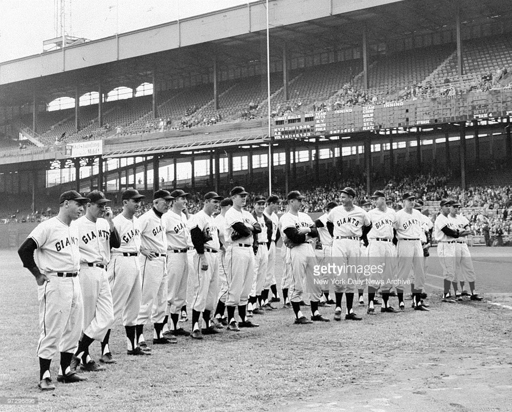 When the final out was recorded that day at 4:35 PM, the curtain came down on the Giants’ historic 75 years in the National League while residing in New York. They were formed in 1883 after inheriting the players from the defunct Troy, New York National League team. The Polo Grounds, in its present location, had been their home since 1891. After one particularly satisfying victory over the Philadelphia Phillies in 1888, the year of their first National League championship, manager Jim Mutrie stormed into the dressing room and exclaimed, “My big fellows! My giants!” From then on, the club was known as the “Giants.”