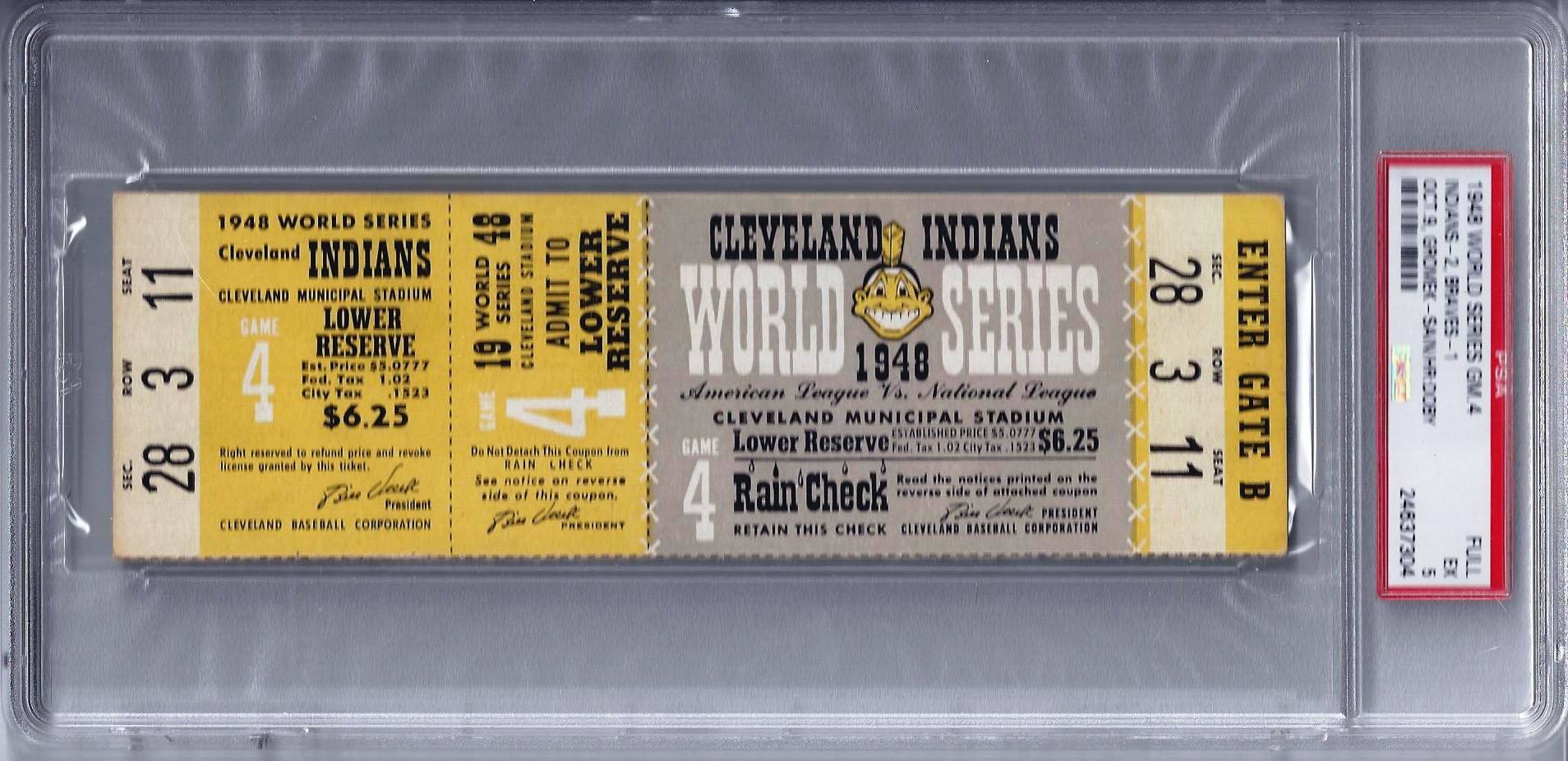 The 1948 World Series drew a total attendance of 358,362, with an average of 59,727 per game. Game Five at Cleveland Stadium saw a major league record crowd of 86, 288. Nine future Hall-of-Famers were in the dugouts for the Series: Lou Boudreau, Larry Doby, Bob Feller, Joe Gordon, Bob Lemon, Satchel Paige, Bill McKechnie, Billy Southworth, and Warren Spahn. Indians’ owner Bill Veeck is also in the Hall of Fame.