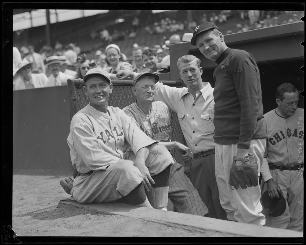 I thought it would be fun to post some of the best from the collection. The featured photo below is one of my favorites: Casey Stengel with some of his Boston Bees players, wonderfully colorized by Don Stokes. Click on the link to see more from the Leslie Jones Boston Public Library baseball collection: