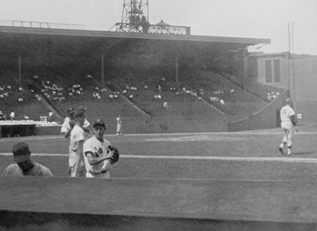 Never before had anyone autographed a baseball for me so, consequently, Dom DiMaggio became my favorite player whom I never saw play. Out of curiosity, though, I went to my neighborhood library branch and read whatever I could find about his baseball career. Nicknamed “The Little Professor” because he wore glasses and was small in stature, he played center field for eleven seasons for the Boston Red Sox. [Recent essay on the career of Dom DiMaggio] Twice an All-Star, he was a leadoff batter through most of his career. An excellent fielder with a strong arm, he was fast enough to lead the American League in stolen bases one season. At the time of his retirement, his 34-game hitting streak was a Red Sox record. Though not the star his older brother was, he was good enough to be inducted into the Red Sox Hall of Fame.