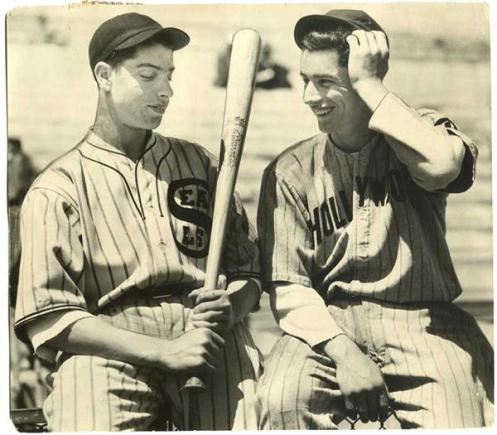 Here’s something I found about Dom: “The DiMaggio brothers in uniform during WWII. Dom of the Boston Red Sox to the left and the Yankee clipper, Joe, to the right. Dom had to fight his way into the service. Initially, The Little Professor was rejected by the military due to his poor eyesight but wrote a letter to the Navy pleading for acceptance. Clearly impressed with Dominic’s unrivaled character, the Navy accepted him.”