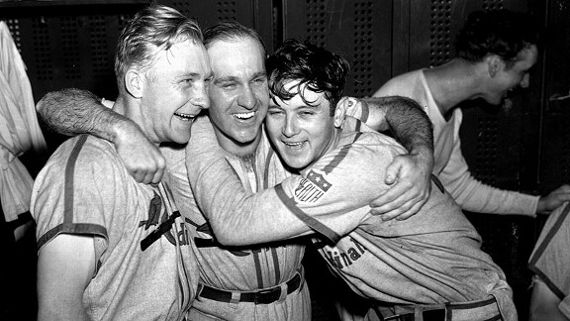 What else besides a World Series victory could possibly bring out such pure, uninhibited child-like emotions, especially from a straight-laced guy like Joe DiMaggio? It’s a side of him we don’t see very often in old photos. Maybe that’s one of the reasons why we love this game so much. Like all the players shown in the photo gallery above, we also can revert to our childhood for an extended period of time, basking in sheer emotional joy, when our team wins the Fall Classic…and no one can blame us!