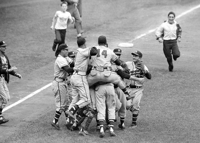 Today’s featured photo above is from the 1947 World Series. In Part I, we saw Cookie Lavagetto being carried off the field by his ecstatic teammates after his