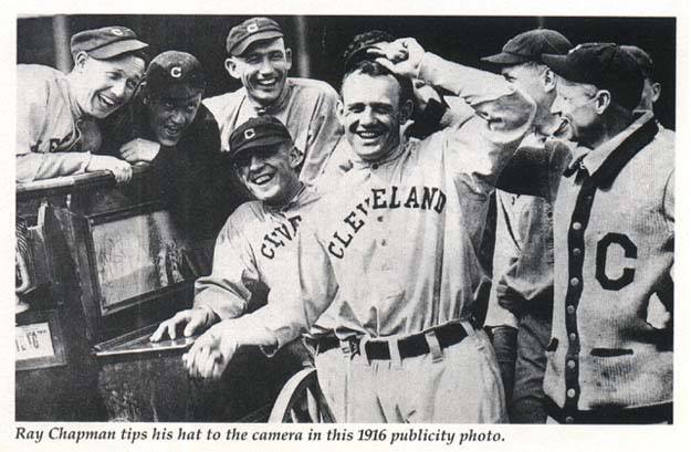 Ray Chapman was born in Beaver Dam, Kentucky. He broke into the major leagues in 1912 with the Cleveland Naps. He led the American League in runs scored and walks in 1918. A top-notch bunter, Chapman is still sixth on the all-time list for sacrifice hits and he holds the single season record with 67, set in 1917. Chapman was also an excellent shortstop who led the league in putouts three times and assists once. He batted .300 three times, and led the Indians in stolen bases four times. In 1917, he set a team record of 52 stolen bases, which stood until 1980. He was hitting .303 with 97 runs scored at the time of the fateful beaning.