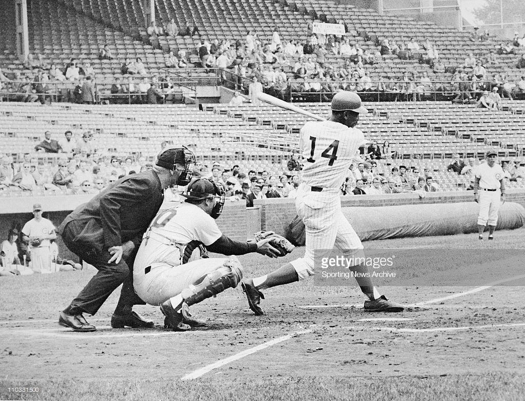 Those cheers for Ernie always dwarfed the cheers for any other Cub player. It was always worth watching a Cub game just to see Ernie play. Those Cub teams in the 50’s were pretty miserable, so Brickhouse had little to get excited about, except for this young power-hitting shortstop, just up from the Kansas City Monarchs, whoever they were. I can still remember how excited Brickhouse got whenever Ernie hit one into the bleachers: