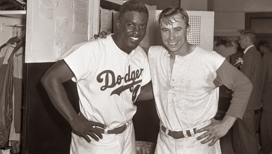 It’s only fitting to end the “Salute” with a photo gallery tribute to Jackie Robinson. Be sure to see the wonderful photo of Jackie Robinson and Branch Rickey from later in their lives. — the two men whose courage, foresight, and uncompromising determination to right a grave moral injustice, finally opened the major league door to many long-deserving ball players. We owe both of them an incredible debt of gratitude. The photo is from July 20, 1962. The caption reads: “It was taken three days before Jackie was inducted into the Hall of Fame and seventeen years after they shocked the baseball world with the announcement that Jackie had signed a contract to pay for the Brooklyn Dodgers farm team in Montreal.”