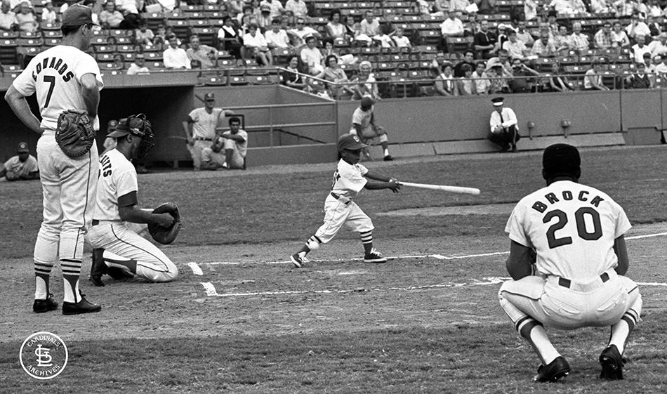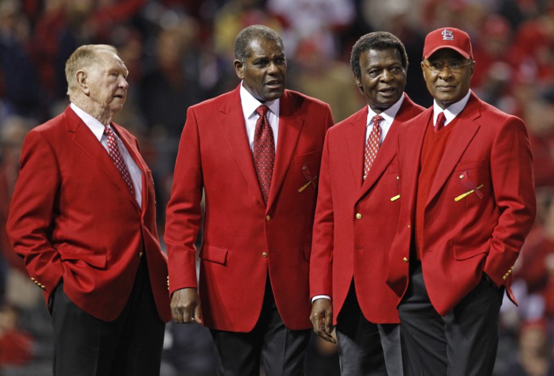 Of course, Lou Brock’s 19-year Hall-of-Fame career is full of highlights. He hit .297 with 3023 hits, 438 doubles, 149 home runs, 900 RBIs, and 938 stolen bases. He’s best remembered for breaking Ty Cobb’s all-time major league stolen base record in 1977. Brock was an eight-time stolen base leader, six-time All-Star, two-time World Series Champion, and recipient of The Babe Ruth Award and The Roberto Clemente Award. His #20 was retired by the Cards, and in 1985 he was inducted into the Baseball Hall of Fame.