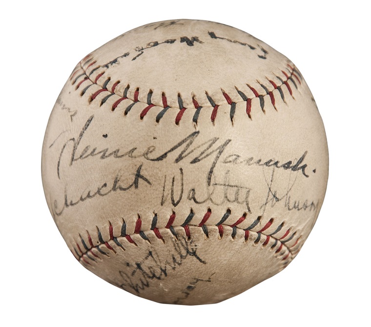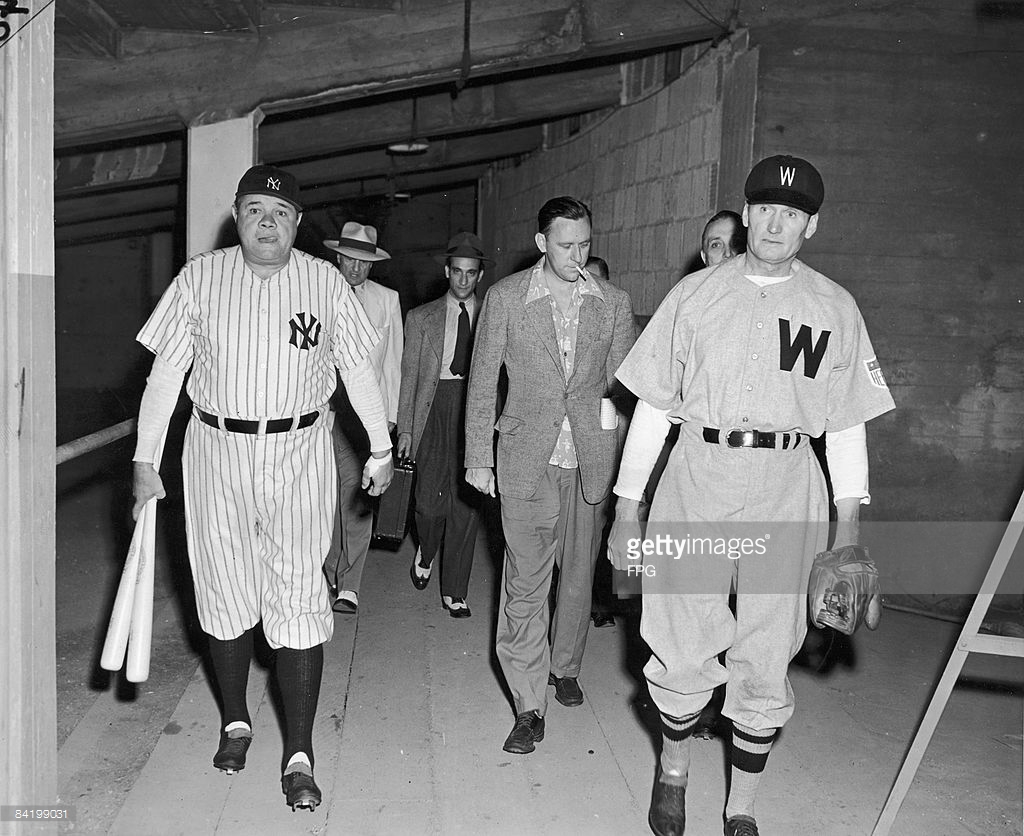 2. L-R: Honus Wagner, Bill McKechnie, John McGraw, Walter Johnson, Babe Ruth, Nick Altrock. Christy Walsh (Babe Ruth’s agent).