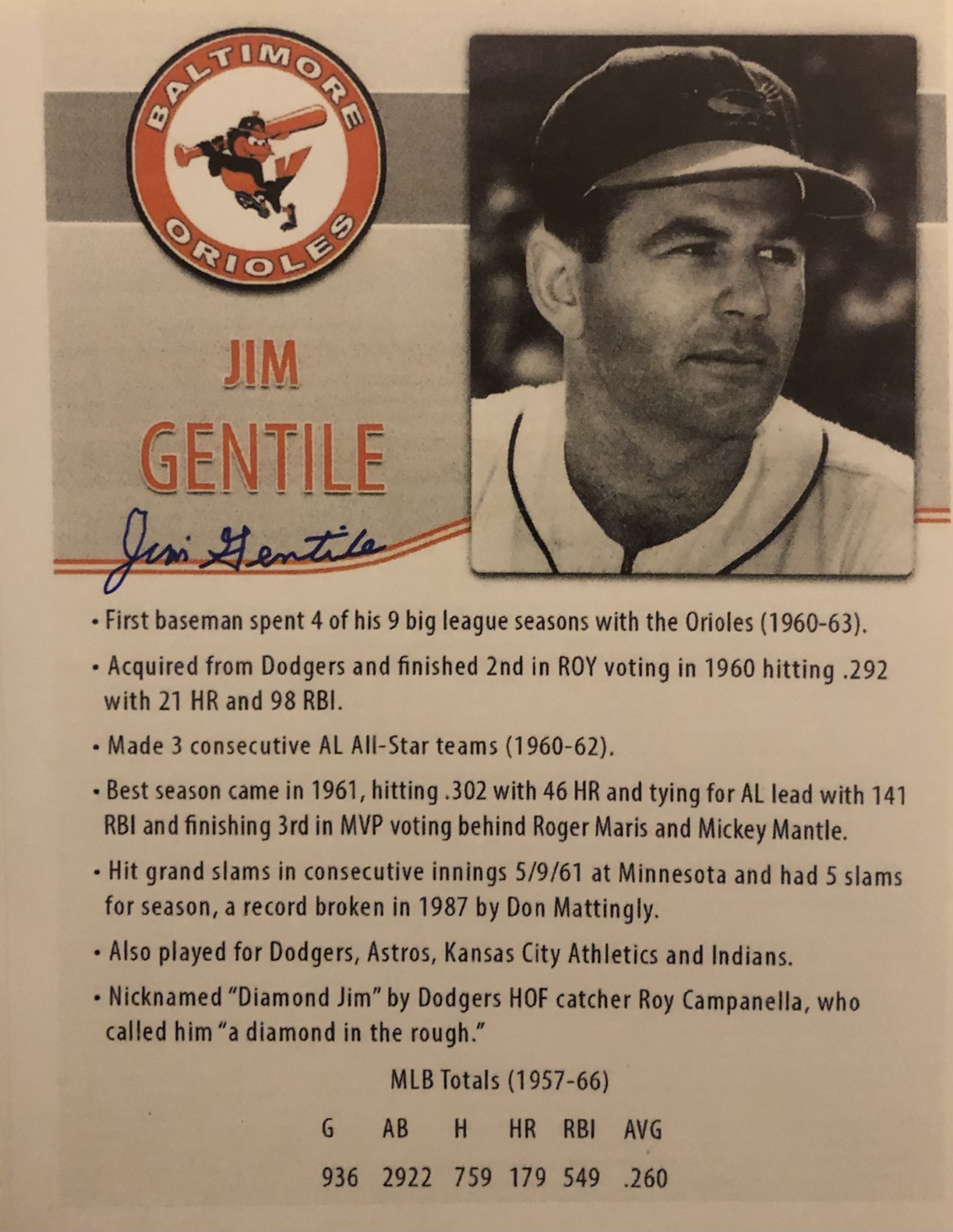 Information: Excerpts edited from emails from Everett Shockley; and the Jim Gentile Wikipedia page; stats from Baseball Reference.com