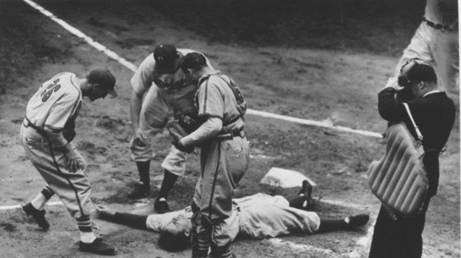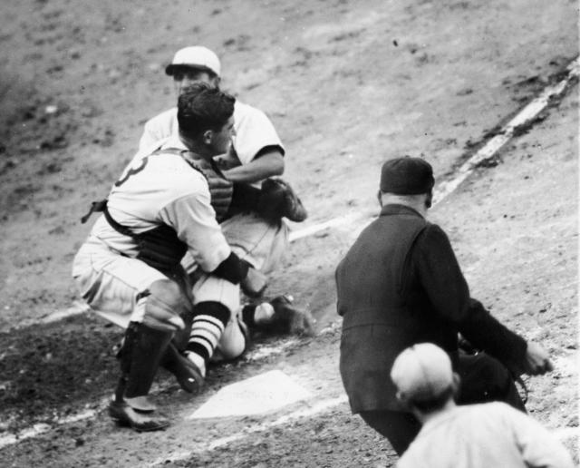 Commissioner Landis removes Medwick from the 1934 World Series “for his own safety.”