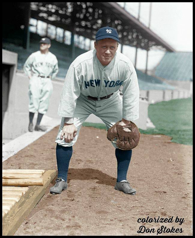 In the featured photo above, we see a beautiful colorization of Wally Schang by our resident baseball artist, Don Stokes. Check out those gnarled fingers…That’s evidence we’re looking at a major league catcher!