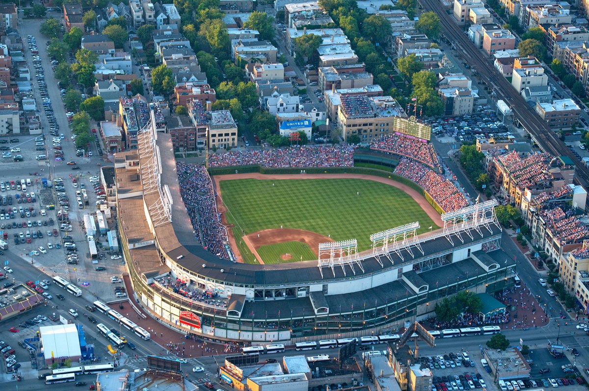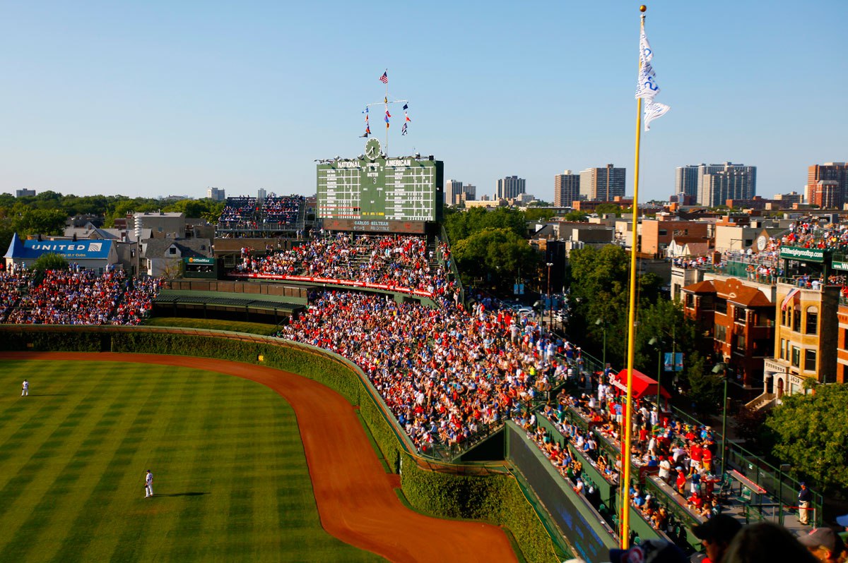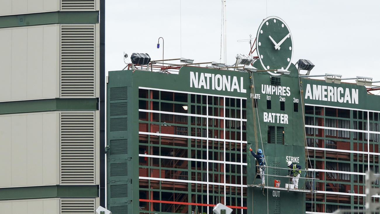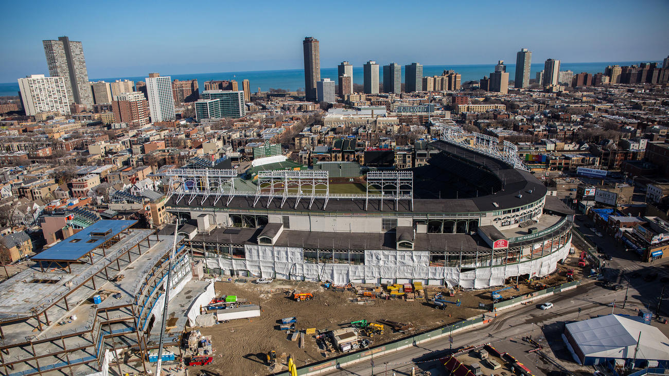 Two notable exceptions were when the Cubs painted the marquee purple in 2010 when Wrigley hosted the Northwestern-Illinois football game, and in 2014 when the Cubs painted it green to mark the ballpark’s 100th anniversary.) On Monday, the statues of Harry Caray, Ron Santo and Billy Williams were returned to their homes; Santo and Williams outside Gate D at Sheffield and Addison, with Caray outside the Budweiser Bleacher Gate entrance, at Waveland and Sheffield. On Friday, the Ernie Banks statue is expected to return once the Gate F is cleared following the marquee’s installation.